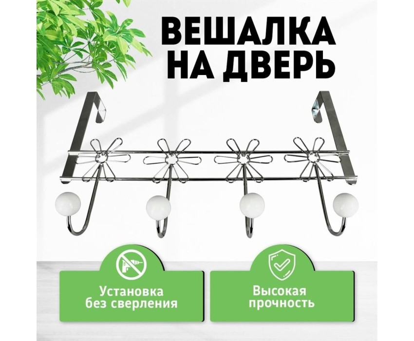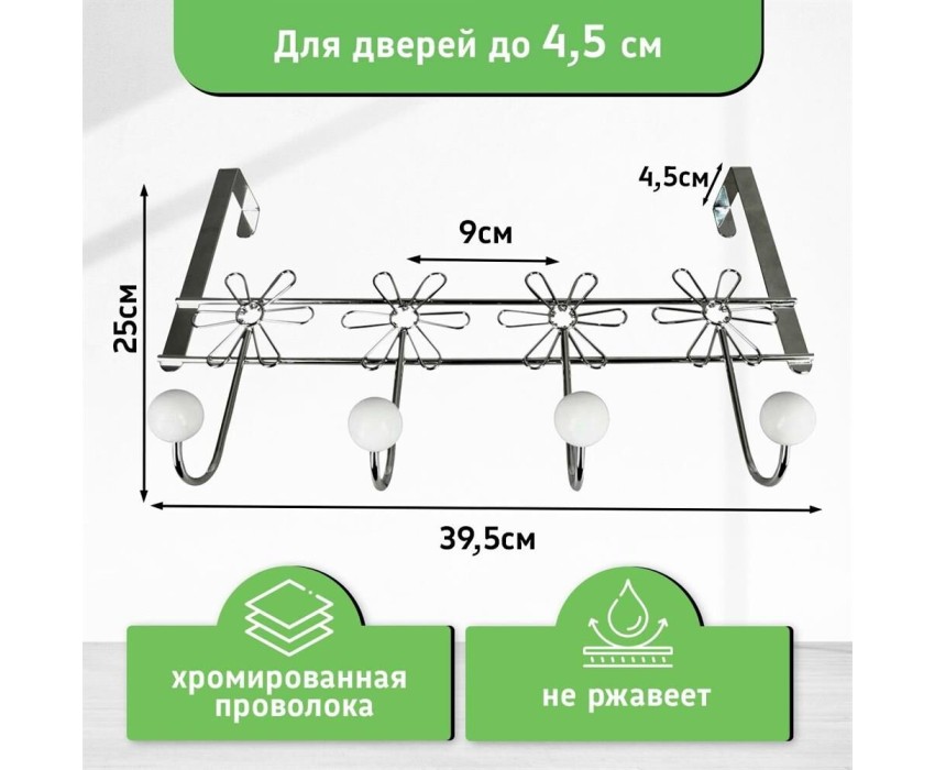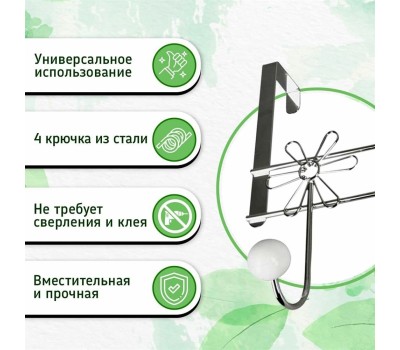 R-355061 Вешалка на дверь, 4 крючка. Материал хромированная проволока.Размер 11.5х39х24см