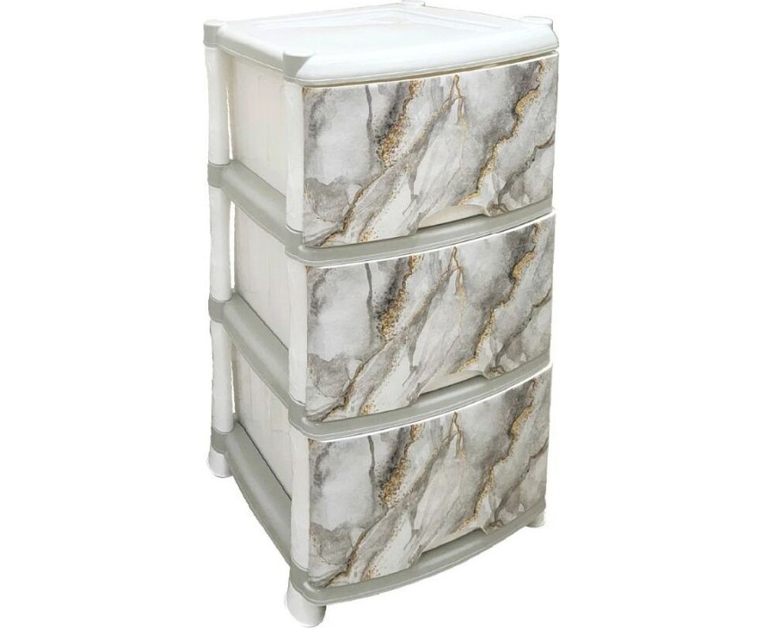 Комод из пищевого пластика с тремя выдвижными ящиками, гармонично впишется в интерьер любой комнаты. Преимущества: - Легкий и вместительный комод поможет обеспечить порядок; - Передние панели декорированы узором Мрамор.