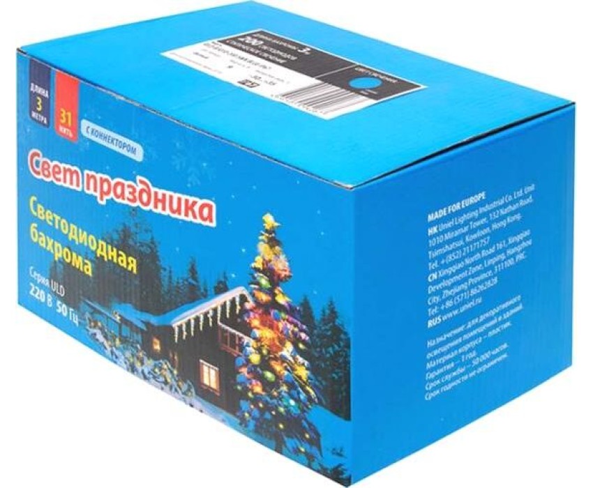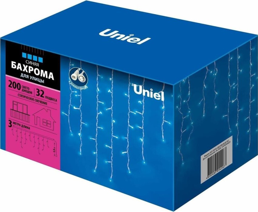 Бахрома светодиодная UNIEL (UL-00002329) ULD-B3010-200/SWK BLUE IP67 Бахрома светодиодная со статическим свечением, 3м. Сое