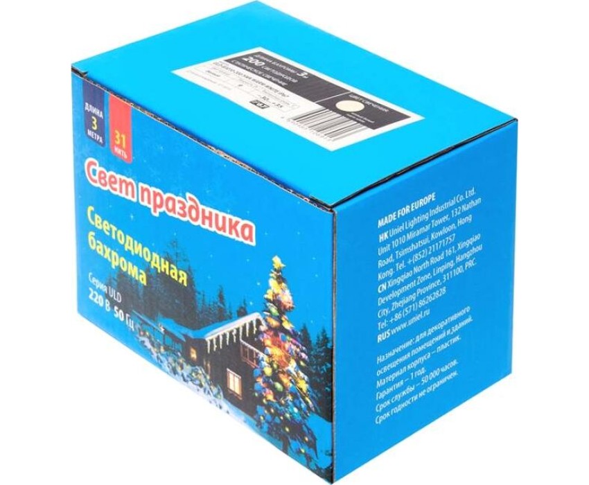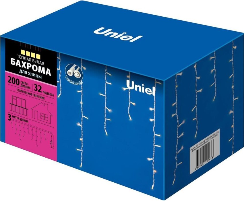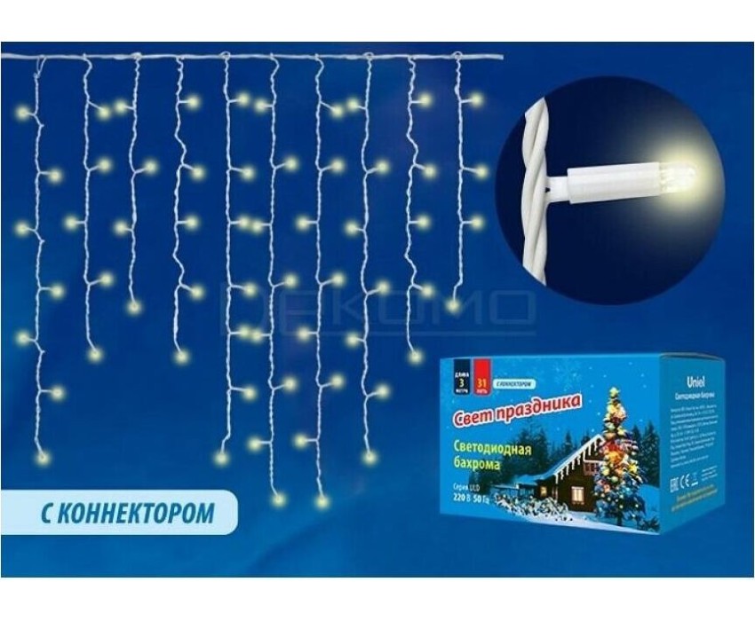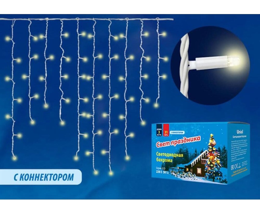 Бахрома с коннекторами UNIEL UL-00003679 ULD-B3010-200/SWK WARM WHITE IP67