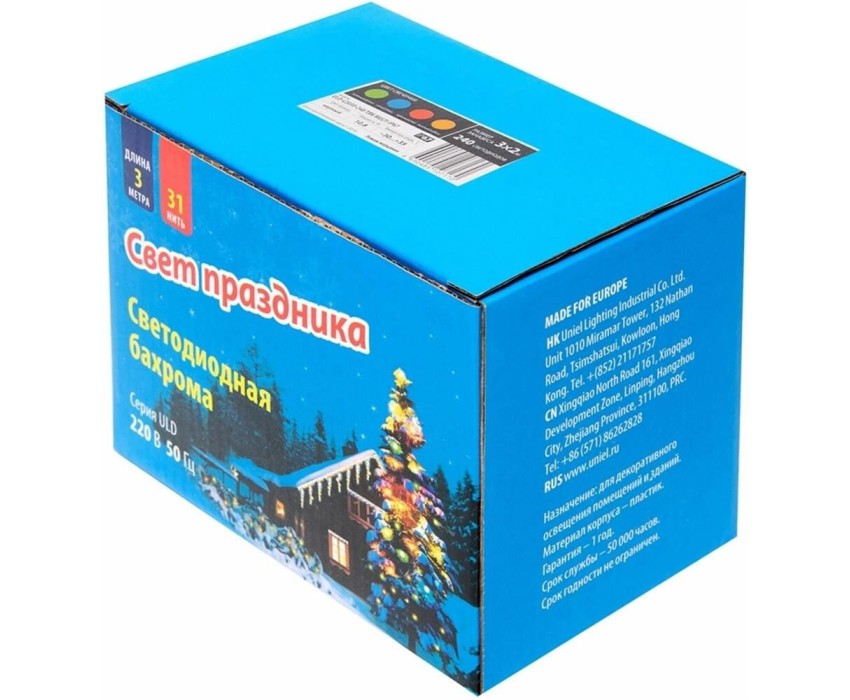 Входное напряжение, В - 220-240; Диапазон рабочих температур, °С - -30 +35; Длина, м - 3; Класс защиты, IP - 67; Количество светодиодов, шт - 240; Минимальная партия - 1; Мощность, Вт - 10,8; Размеры, мм - 3000*2000; Свет - разноцветный; Срок гарантии, мес. - 12 месяцев; Срок годности - не ограничен; Срок службы, ч - 30000; Тип - занавес; Частота, Гц - 50-60