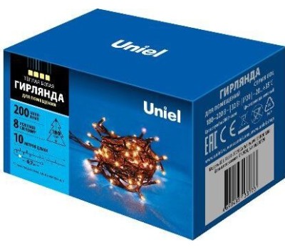 Гирлянда UNIEL (UL-00007190) UDL-S1000-200/DGA WARM WHITE IP20 MINI Гирлянда с контроллером, 10м. 200 миниламп накаливания. Теплый белый свет