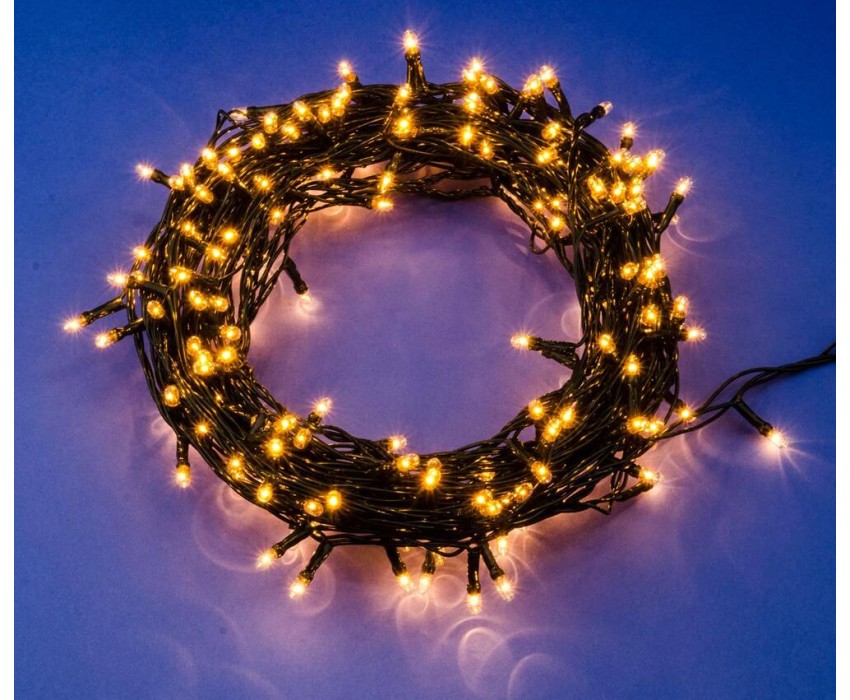 Входное напряжение, В - 180-220; Диапазон рабочих температур, °С - от -20 до +35; Длина, м - 10; Количество ламп, шт. - 200; Материал корпуса (изделия) - пластик; Мощность, Вт - 32; Назначение - декоративная подсветка; Свет - теплый белый; Срок годности - не ограничен; Срок службы, ч - 2000; Тип - Гирлянда; Частота, Гц - 50-60