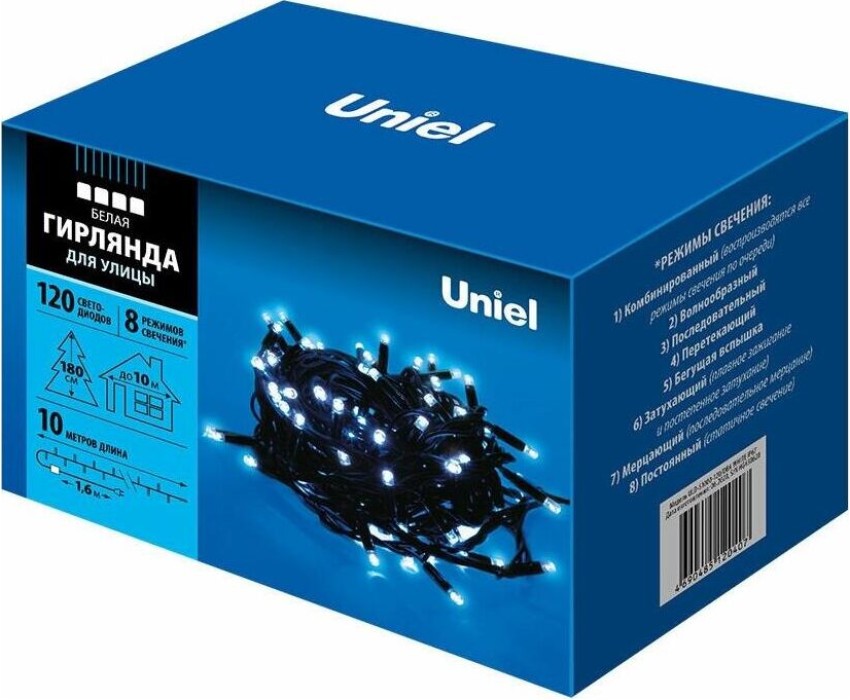 Гирлянда UNIEL (UL-00005264) ULD-S1000-120/DBA WHITE IP67 Гирлянда светодиодная с контроллером, 10м. 120 светодиодов. Белый свет. Провод черный. ТМ Uniel