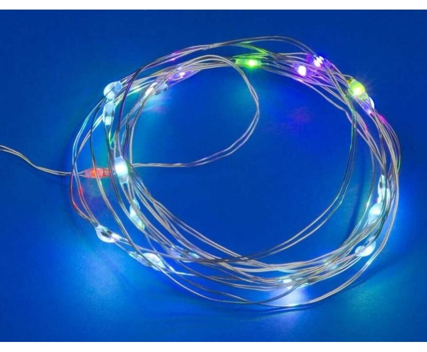 Диапазон рабочих температур, °С - от -20 до +35; Длина изделия, мм - 5 000; Длина кабеля, м - 0,3; Длина, м - 5; Количество светодиодов, шт. - 50; Материал корпуса (изделия) - пластик; Минимальная партия - 1; Назначение - декоративная подсветка; Свет - RGB; Срок годности - не ограничен; Срок службы, ч - 30000; Тип - Гирлянда; Элемент питания - 3АА