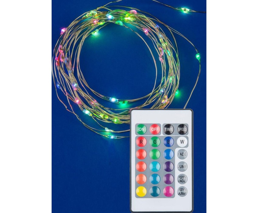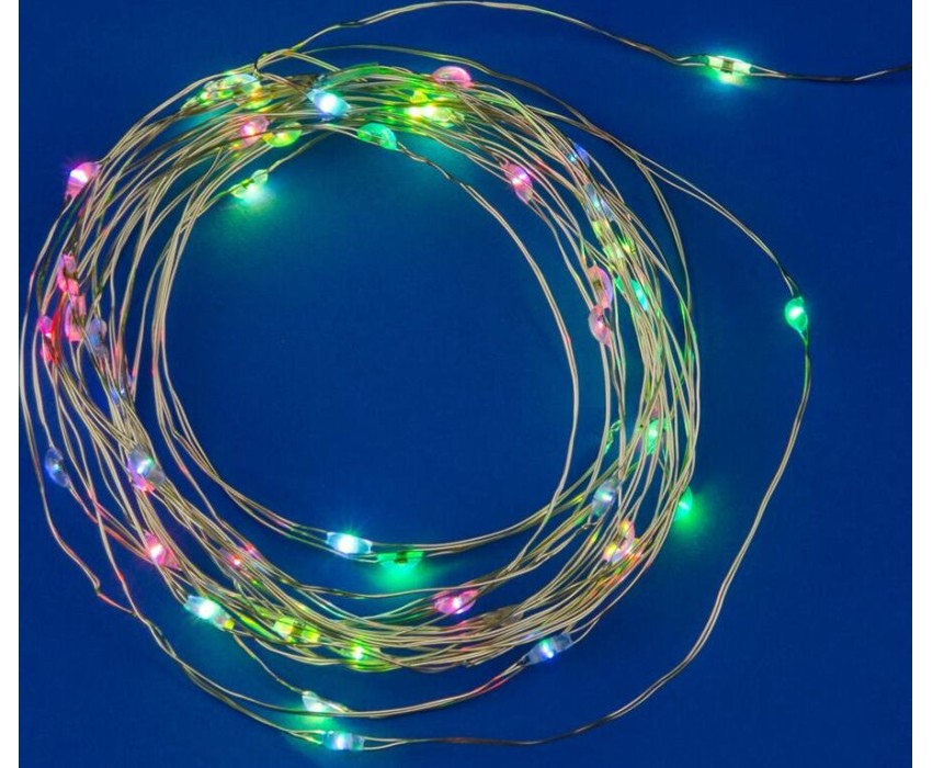 Гирлянда UNIEL (UL-00007248) ULD-S0500-050/DTB/3AA/RC RGB IP20 DEW Гирлянда светодиодная на батарейках 3AA (не в/к), 5м. 50 светодиодов. RGB свет