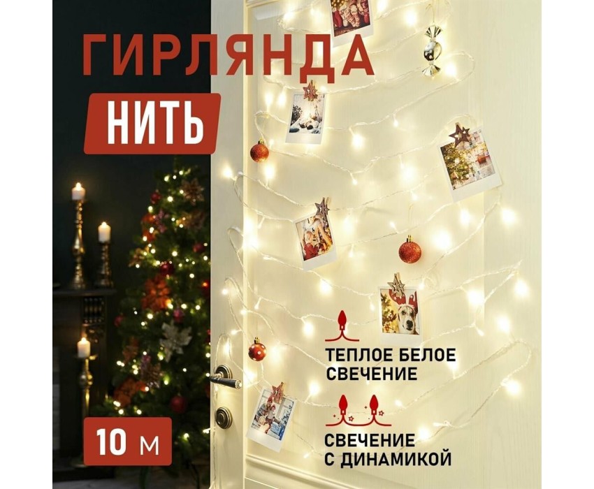 Гирлянда NEON-NIGHT (303-186) ГИРЛЯНДА ТВИНКЛ ЛАЙТ 10 М, ПР-Й ПВХ, 80 LED, ТЕПЛЫЙ БЕЛЫЙ