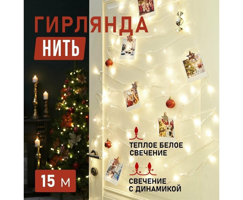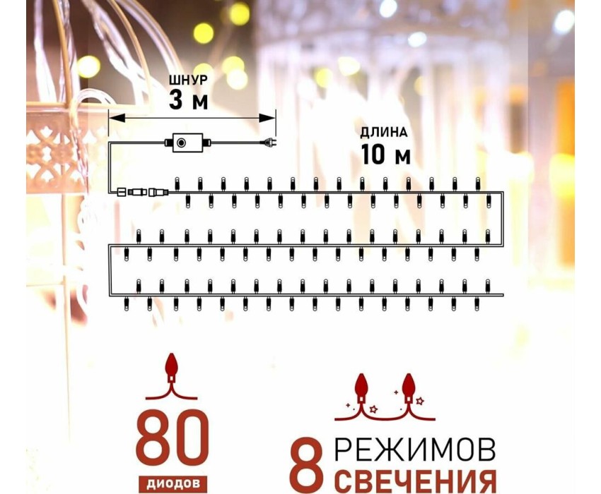 Гирлянда NEON-NIGHT (303-196) ГИРЛЯНДА "ТВИНКЛ ЛАЙТ" 15 М, ПР-Й ПВХ, 120 LED, ТЕПЛЫЙ БЕЛЫЙ