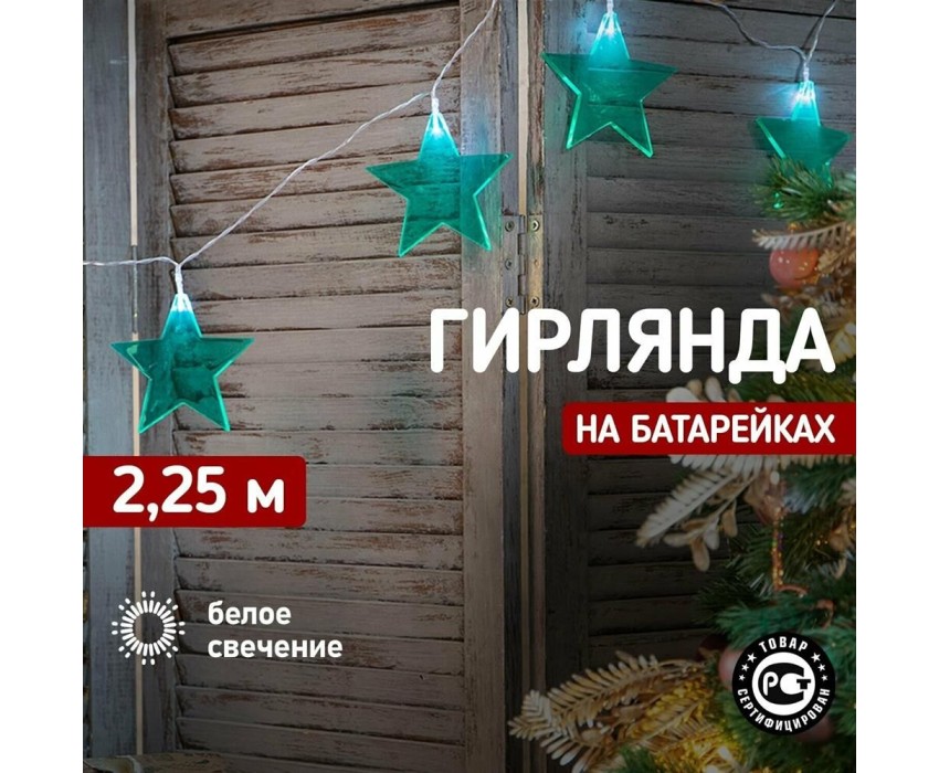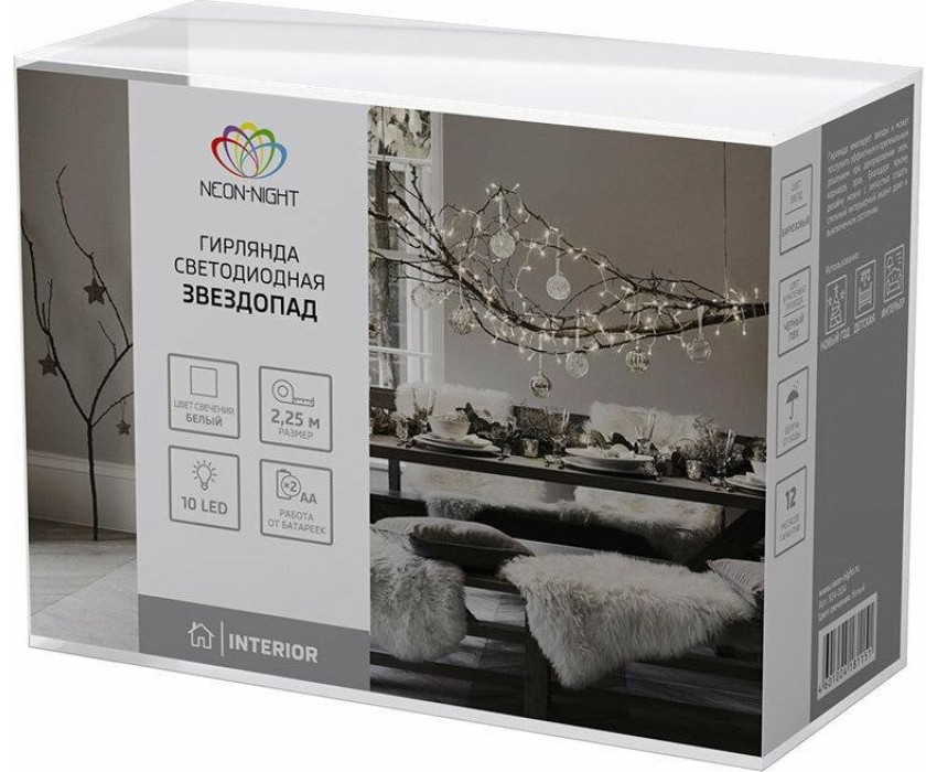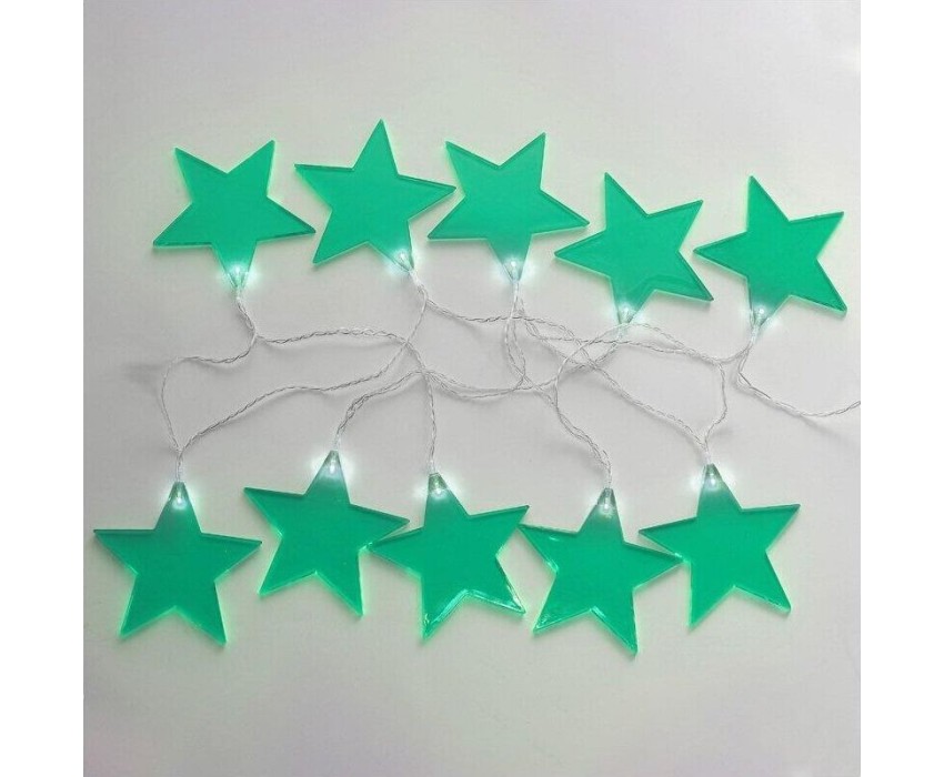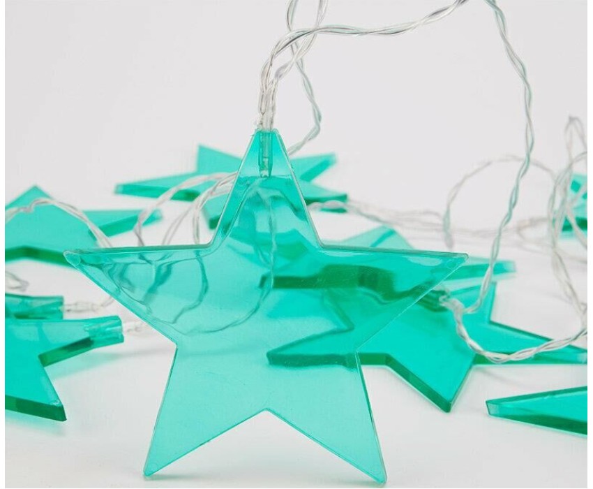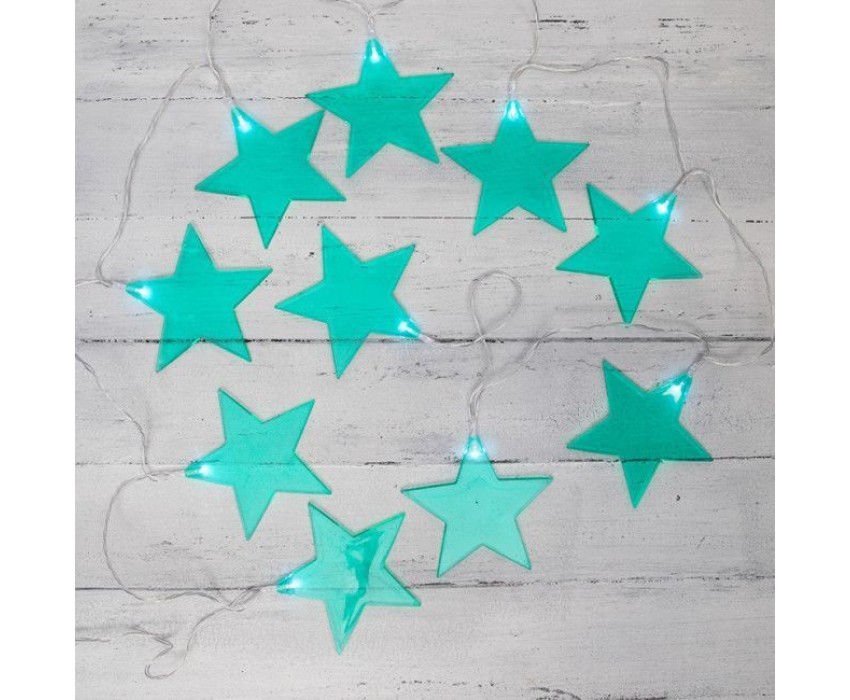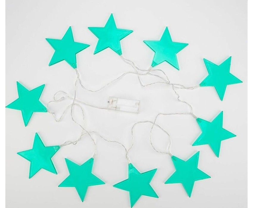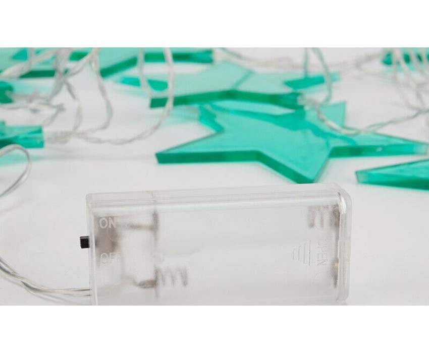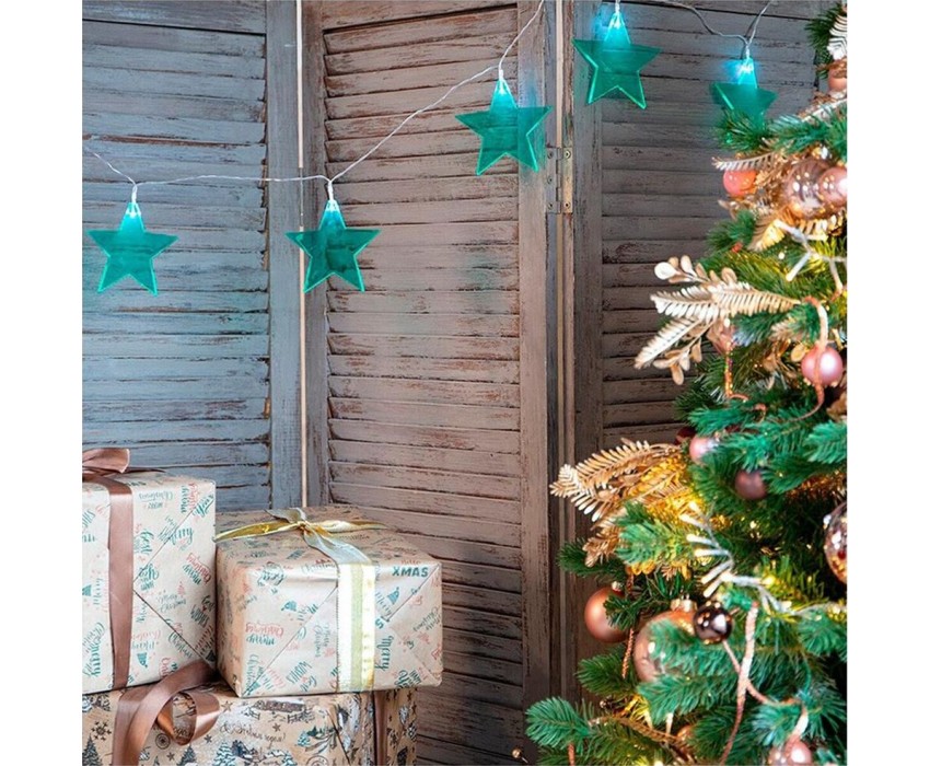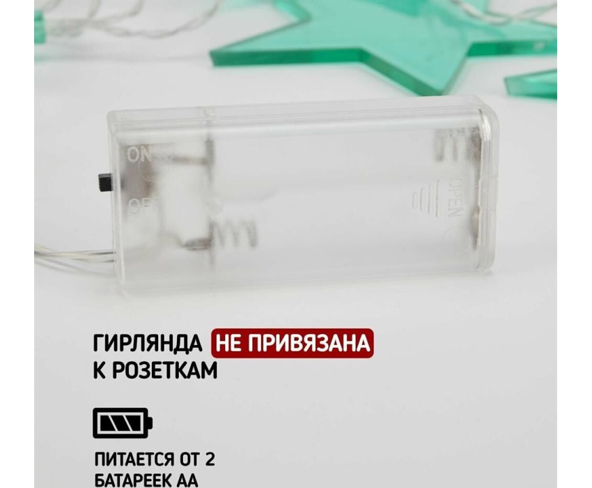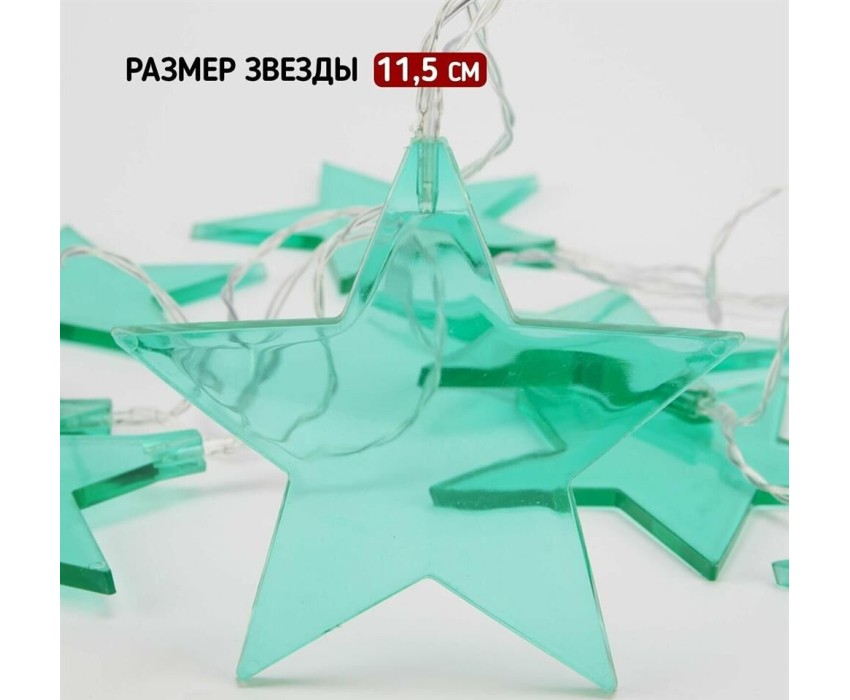 "Светодиодная гирлянда «Звездопад» NEON-NIGHT станет прекрасным решением для создания праздничной атмосферы и уюта в интерьере. С помощью гирлянды можно украсить карниз в спальне, стены в детской, фотозону или даже офисное помещение. Благодаря яркому дизайну можно создать стильный интерьерный акцент даже в выключенном состоянии. Всего на гирлянде 10 бирюзовых звезд, светящихся белыми диодами, расположенных на расстоянии 16,67 см друг от друга. Работает от 2 батареек типа АА (не в комплекте)."