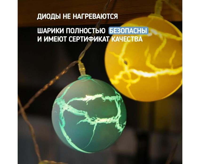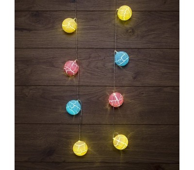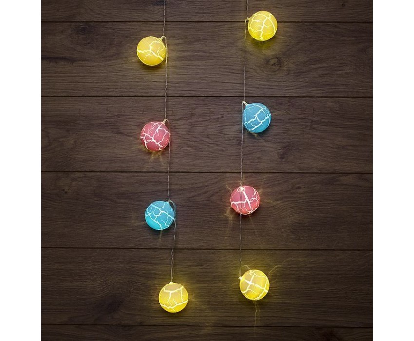 Светодиодная гирлянда «Карамельки» представляет собой гирлянду типа «Твинкл-Лайт», но на каждой нити теперь не просто яркий диод, а насадки в виде разноцветных шариков. Данная гирлянда станет отличным украшением не только новогодней ели, но и любого места в интерьере. Такая универсальность и удобство достигнуты батарейным блоком питания типа AA (2 шт.), что позволяет использовать гирлянду независимо от сети переменного тока.