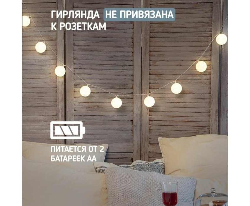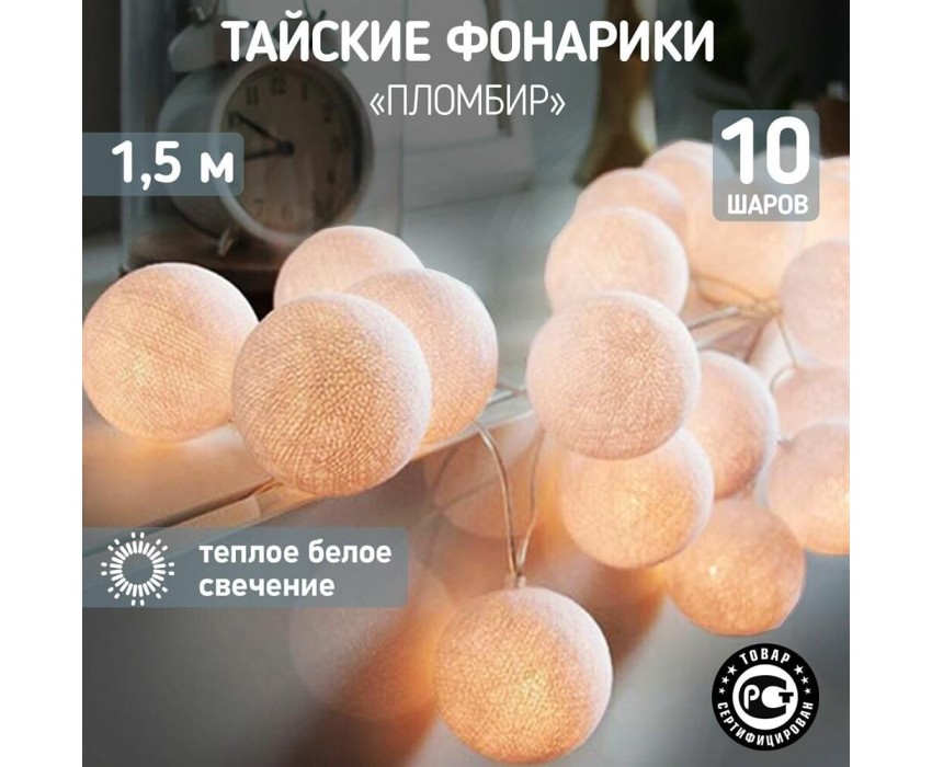 Гирлянда NEON-NIGHT (303-077) ТАЙСКИЕ ФОНАРИКИ ПЛОМБИР 1.5 М, 10 LED, ПР-Й ПВХ, ТЕПЛЫЙ БЕЛЫЙ,
