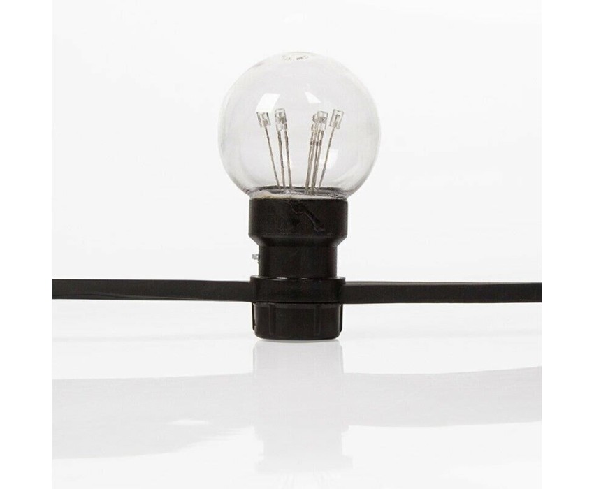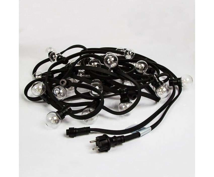 "Гирлянда ""LED Galaxy Bulb String"" внешне схожа с гирляндой Belt-light. Отличается она тем, что уже готова к использованию, на шине через каждые 33 см уже смонтированы прозрачные лампочки диаметром 45 мм, в каждой из которой есть 6 диодов. Благодаря своей степени защиты гирлянда может быть использована как в помещении, так и на улице, даже в сильный мороз. Данная гирлянда имеет длину 10 м, на которой равномерно расположено 30 лампочек белого цвета свечения."