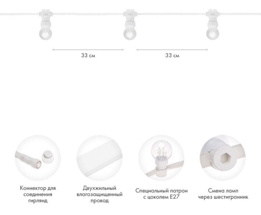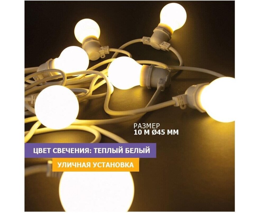Гирлянда NEON-NIGHT (331-306) ГИРЛЯНДА LED GALAXY BULB STRING 10М, 30 ЛАМП*6 LED ТЕПЛЫЙ БЕЛЫЙ, белый каучук, IP65