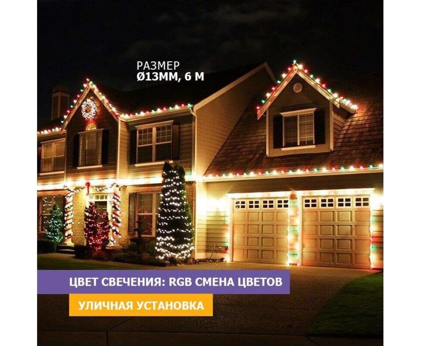 "Дюралайт-гибкий световой шнур выполненный из ПВХ трубки с токопроводящими жилами и светодиодами внутри. Используется для декоративной и архитектурной подсветки как крупных объектов, так и загородных домов. Благодаря резьбовым коннекторам на концах светового шнура, Вы можете с легкостью соединить несколько отрезков дюралайта, и сделать контуровку с учетом именно Ваших потребностей по длине. Данный Дюралайт поставляется по 6 метров и имеет цвет свечения RGB. Для подключения к сети и использования всех возможностей дюралайта (управление цветом свечения и настройка светодинамических режимов) используется контроллер арт. 245-907 (приобретается отдельно) Подробное описание эффектов, применимых к гирлянде, читайте в описании контроллера."