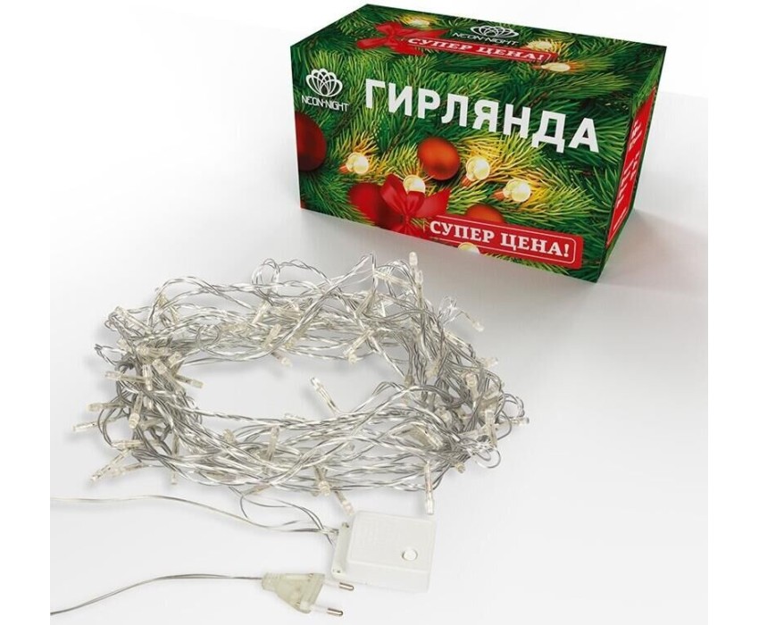 Фигуры интерьерные NEON-NIGHT (303-063) Гирлянда светодиодная универсальная 100 LED Теплый 10 метров, прозр ПВХ, с контр