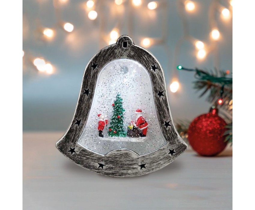 Декоративный светильник «Колокольчик» — необычное интерьерное украшение, которое создано, чтобы подчеркнуть уникальный стиль интерьера и внести атмосферу уюта в ваш дом. 4 диода излучают белый свет нейтрального оттенка и эффектно подсвечивают композицию из фигур, расположенную в центре прозрачной колбы. Вихрь сверкающего конфетти имитирует снегопад, приковывает внимание окружающих и создает праздничное настроение. Фонарь в виде колокольчика питается от 3 батареек типа АА, что дает возможность разместить его в любом удобном месте, где розетка недоступна. USB-кабель входит в комплект.