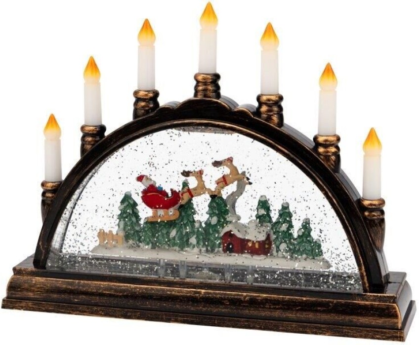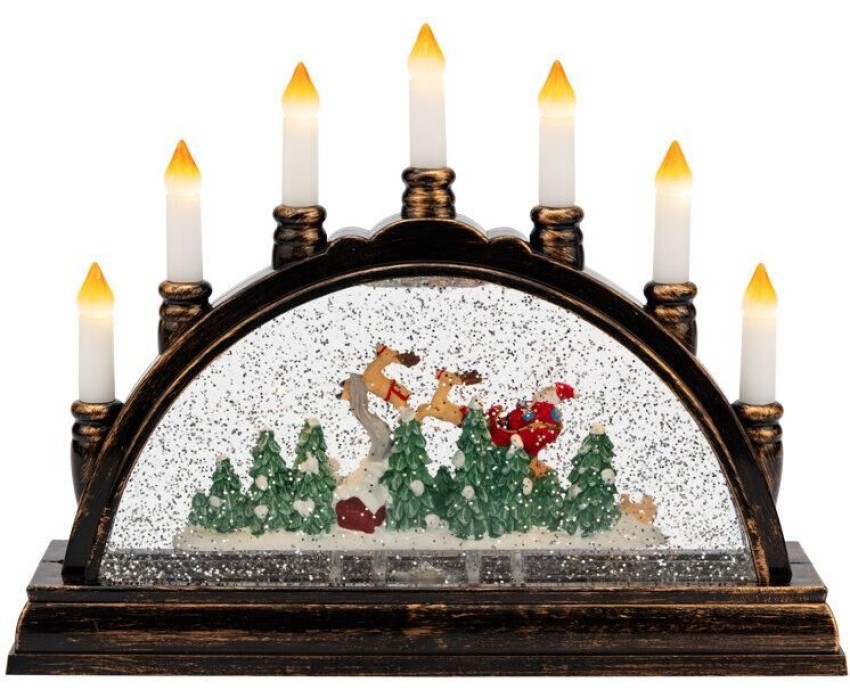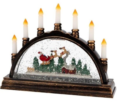 Декоративный светильник «Подсвечник» станет прекрасным украшением интерьера в любом стилевом направлении. Эффект снегопада и мягкая подсветка создают ощущение зимней сказки, а композиция из фигур с новогодней тематикой делают изделие прекрасным подарком к Рождеству. 2 диода излучают теплый белый свет. Светильник можно разместить в любом удобном месте, так как он не нуждается в подключении к электрической сети – работает от 3 батареек типа АА. Альтернативное решение для постоянного питания — USB-кабель, который уже входит в комплект.