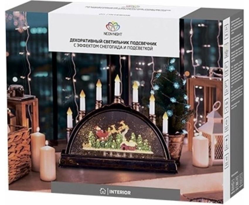 Фигуры интерьерные NEON-NIGHT (501-164) Декоративный светильник "Подсвечник" с эф снегопада