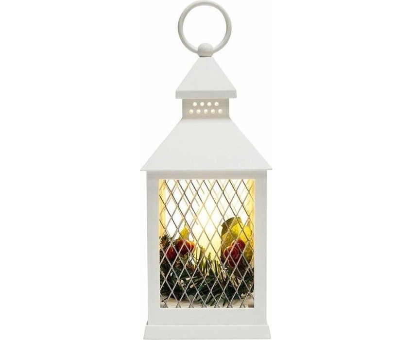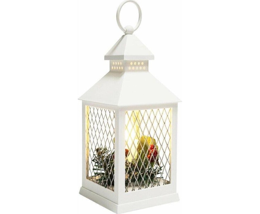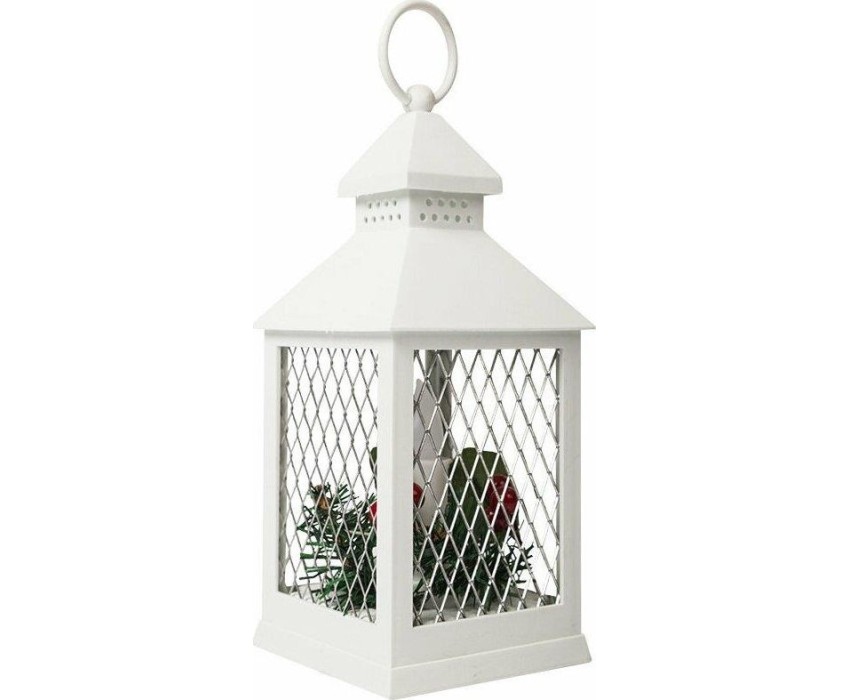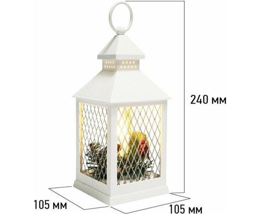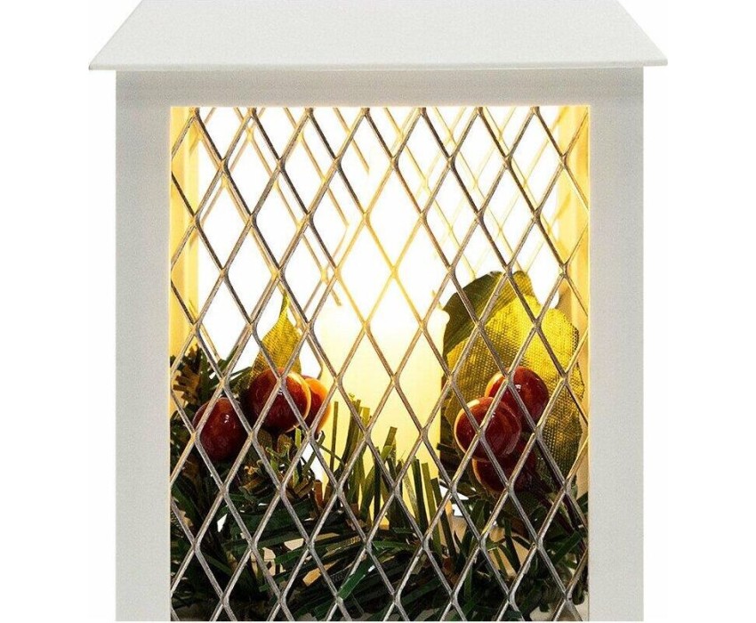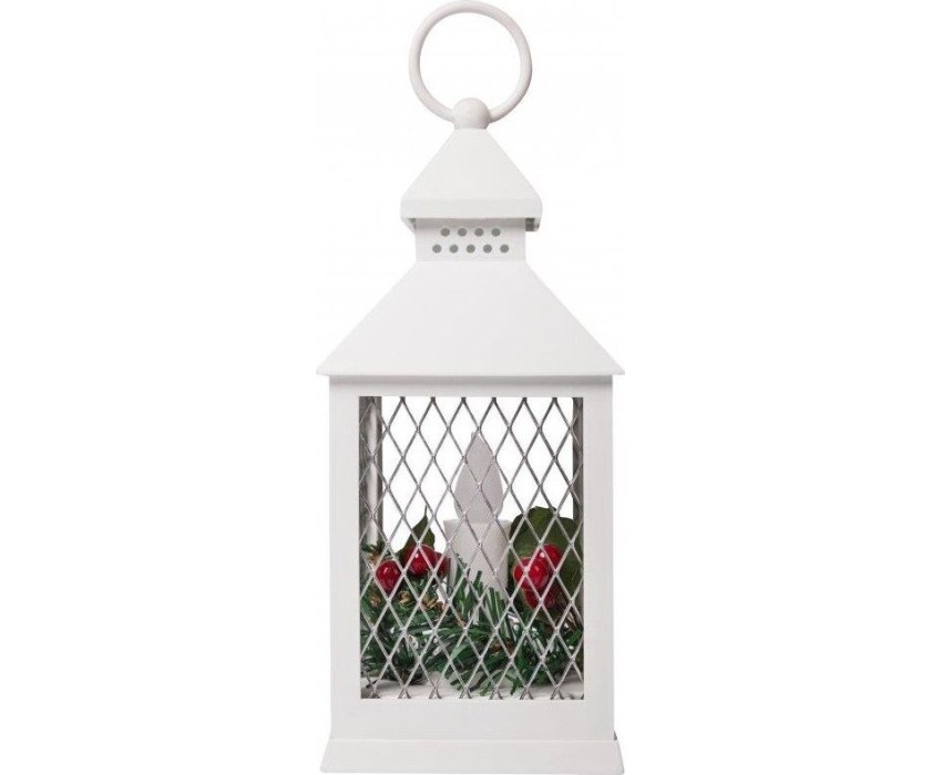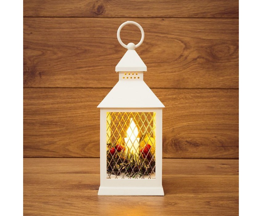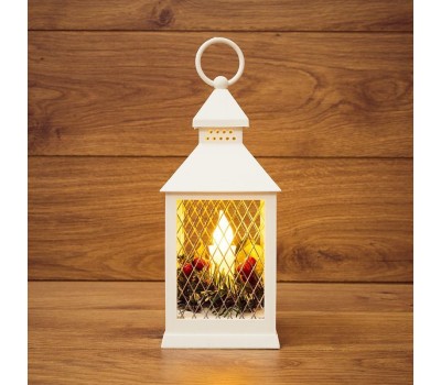 Декоративный фонарь со свечкой — эффектное украшение, которое символизирует Рождество и Новый год, поэтому станет запоминающимся подарком к празднику. В белом корпусе находится оригинальная композиция с искусственными ветками ели и ягодами остролиста. А главный компонент — свеча, внутри которой спрятан 1 диод, излучающий теплый белый свет. Декоративный фонарь работает от 3 батареек типа ААА, включается и выключается при помощи кнопки на корпусе. Изделие предназначено для использования в интерьере.
