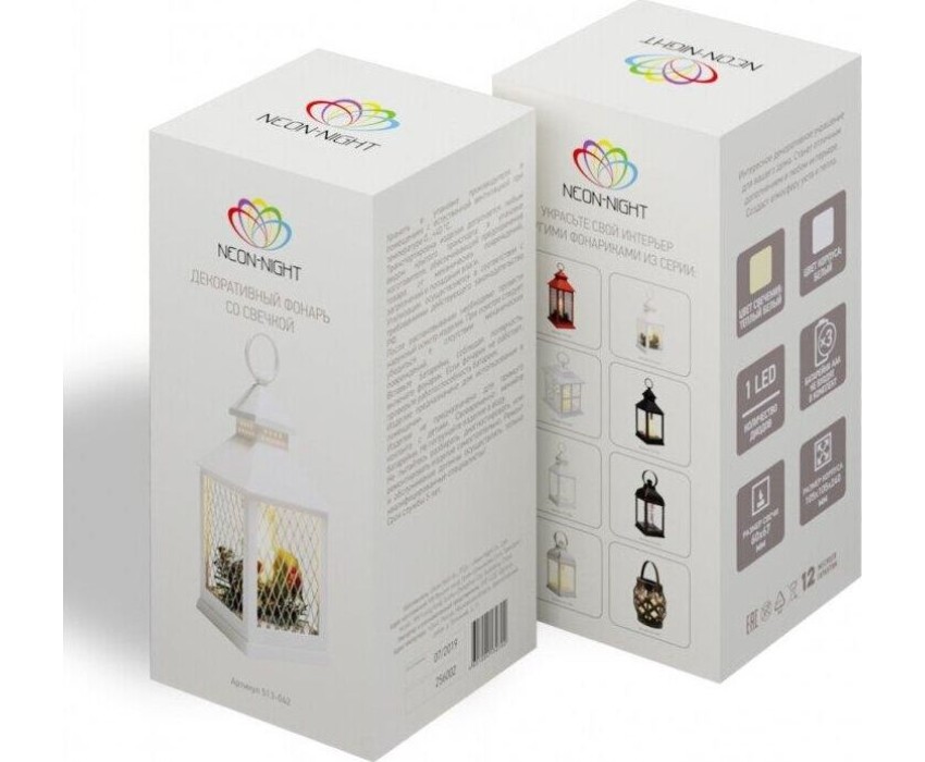 NEON-NIGHT (513-042) Декоративный фонарь со свечкой, белый , 10.5х10.5х24 см, цвет Теплый