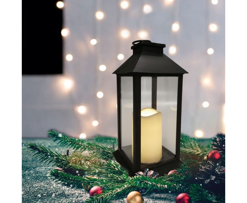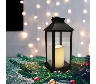 NEON-NIGHT (513-045) Декоративный фонарь со свечой 14x14x29 см, черный , Теплый цвет свечения