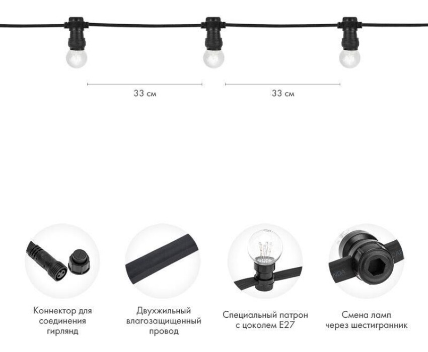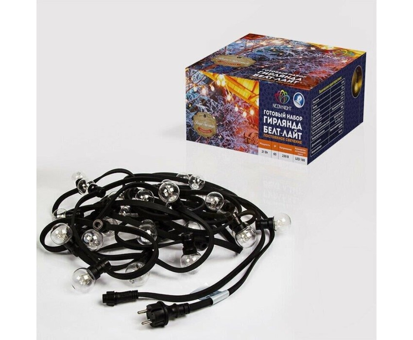 Электрогирлянда NEON-NIGHT (331-326) ''Белт-Лайт'' 10 м, черный каучук, 30 ламп, цвет Теплый белый, IP65, соединяется