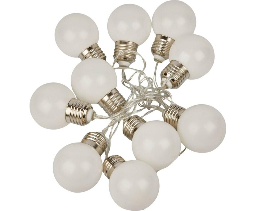 Свет — теплый белый; Диапазон рабочих температур, °С — от -5 до +35; Длина кабеля, м — 0,3; Количество светодиодов, шт. — 10; Материал изоляции кабеля — ПВХ; Степень защиты, IP — 20; Элемент питания — 3АА; Тип — Гирлянды; Вес изделия, гр. — 150; Высота изделия, мм — 70; Диаметр изделия, мм — 50; Длина изделия, мм — 1 800; Длина, м — 1,8; Материал корпуса (изделия) — пластик; Ширина изделия, мм — 50; Срок гарантии, мес. — 12 месяцев; Срок годности — не ограничен; Срок службы, ч — 30000; Назначение — декоративная подсветка; Минимальная партия — 1; Страна производства — Китай; E (новинка) — Да