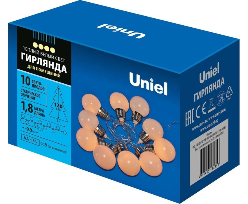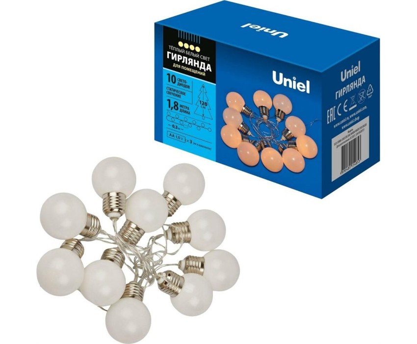 Гирлянда UNIEL (UL-00008421) ULD-S1800-010/STB/3AA WARM WHITE IP20 BULBS
