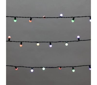 Гирлянда NEON-NIGHT (303-609) Гирлянда Мультишарики 20м, 200LED, диаметр 15 мм, IP44, зеленый провод, свечение мульти (RG/RB), мигание, 230В