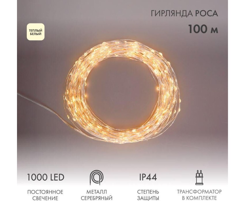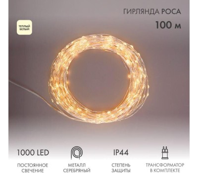 Гирлянда NEON-NIGHT (303-236) Гирлянда РОСА с трансформатором 100 м, 1000 LED, теплое белое свечение