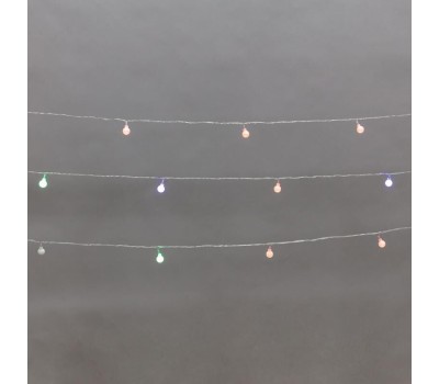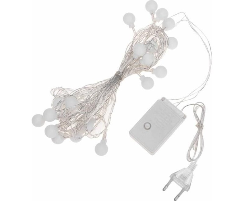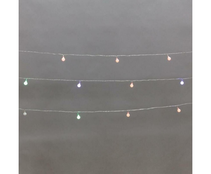 Светодиодная гирлянда Шарики длиной 5 метров выполнена в виде прозрачного ПВХ шнура с матовыми круглыми насадками, которые светятся разными цветами. Всего в гирлянде 20 экономичных светодиодов, которые не перегорают со временем и не нагреваются, поэтому украшение будет долгое время радовать своих обладателей. Изделие предполагает размещение внутри сухих отапливаемых помещений. Гирлянда питается от электросети с напряжением до 230 В.