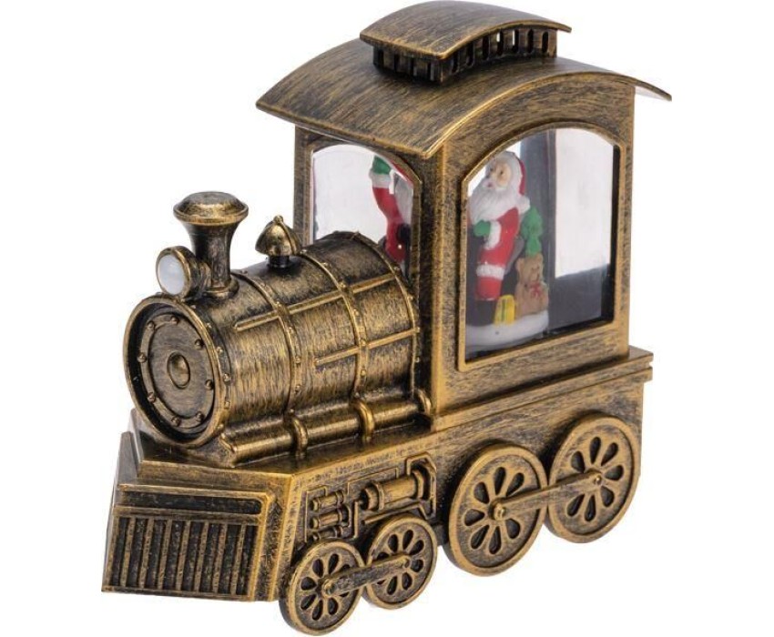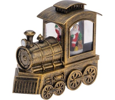 Декоративный фонарь Паровоз — великолепное интерьерное украшение, символизирующее Новый год и Рождество. Светильник с эффектом снегопада и подсветкой выполнен в бронзовом цвете, внутри находится фигурка Санта Клауса. Портативный фонарь питается от 3-х батареек типа АА или через USB-кабель с сетевым адаптером. Вьюга, создаваемая сверкающими блестками, кружится внутри колбы и подсвечивается теплыми белыми диодами. Декоративный фонарь станет прекрасным подарком детям и взрослым, принесет атмосферу зимней сказки в ваш дом.