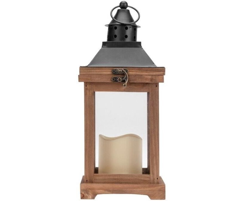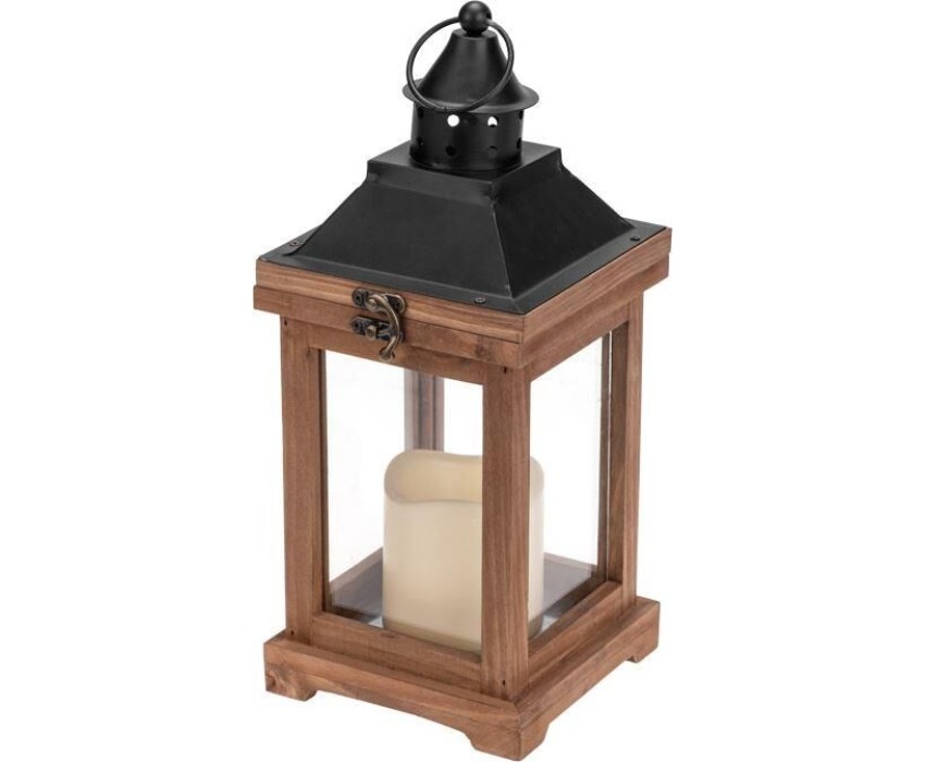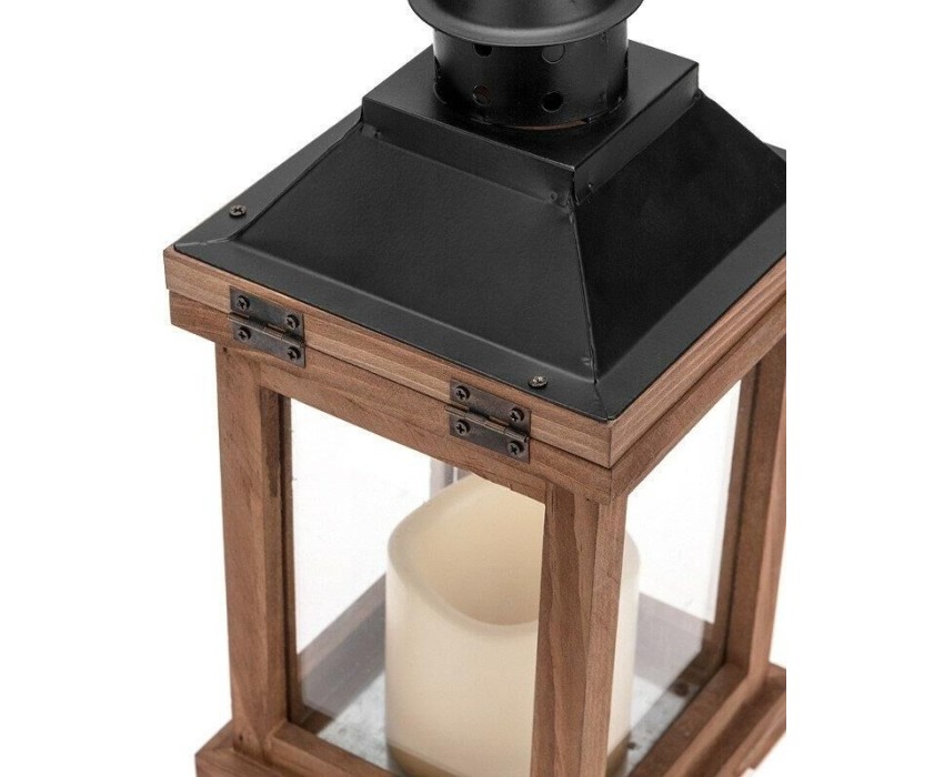 Гирлянда NEON-NIGHT (513-075) Декоративный фонарь со свечкой, корпус из дерева, размер 14х14х35cм, цвет теплый белый