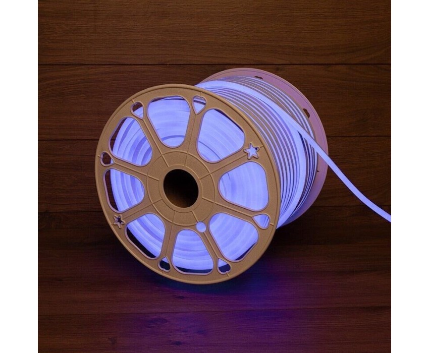 Гибкий неон - световой шнур выполненный из матовой белой ПВХ трубки с токопроводящими жилами и светодиодами внутри. Используется для декоративной и архитектурной подсветки объектов, так же широко распространён в украшении интерьера. Шнур имеет два токопроводящих провода внутри и используется в режиме постоянного свечения. Синий гибкий неон 230В поставляется в бухтах длиной 100 м, имеет модуль резки 1 метр, следуя несложной инструкции легко можно отрезать и подключить гибкий неон нужной длины. Каждая бухта уже укомплектована комплектом подключения, максимальная подключаемая на 1 шнур длина 100 м. Дополнительные шнуры можно приобрести отдельно арт. 134-019. При подключении гибкого неона к соединительному разъему (муфте) необходимо заизолировать свободное воздушное пространство соединительного разъема (муфты) морозостойким силиконовым герметиком, предотвращающим попадание влаги. Сверху данного соединения необходимо использовать термоусаживаемую трубку.