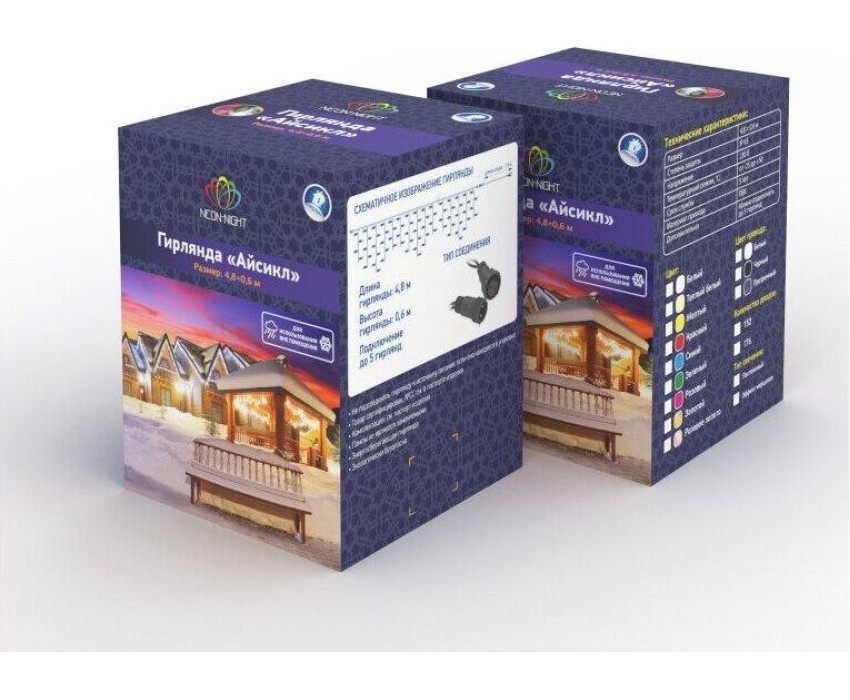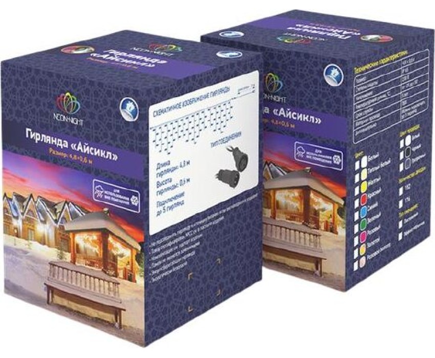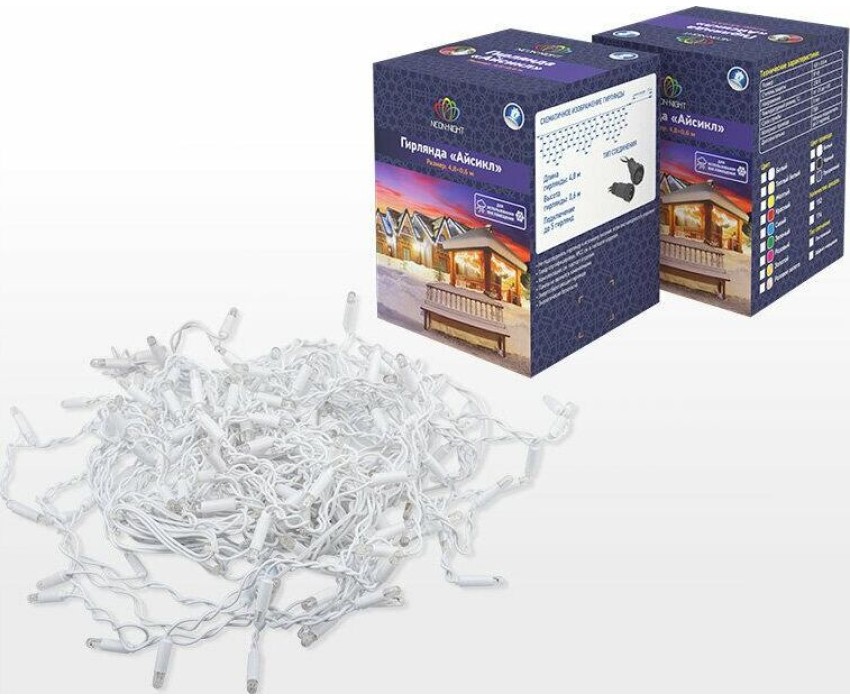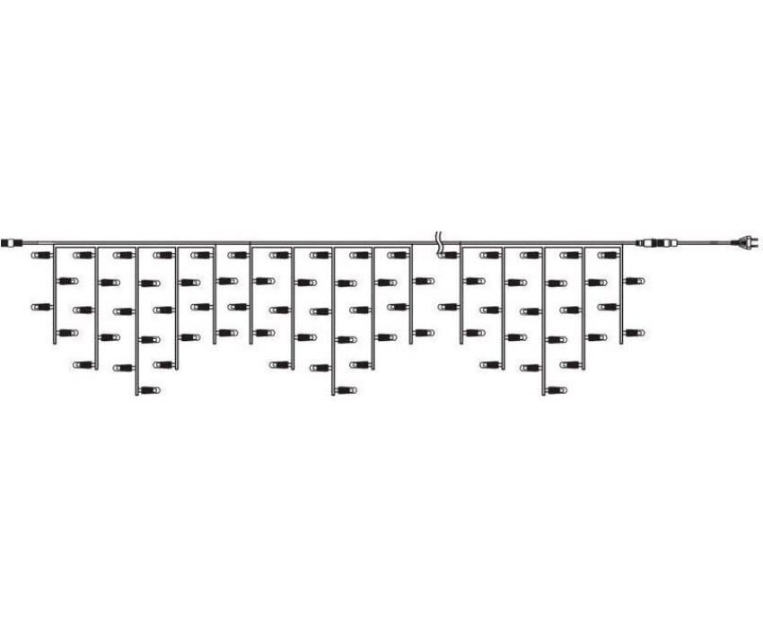 Гирлянда "Бахрома" ("Айсикл") представляет собой гибкий горизонтальный шнур-шину, к которому через определенные промежутки крепятся вертикальные нити разной длины со светодиодами. Она имитирует сосульки и может послужить эффектным и оригинальным решением при декорировании карнизов домов, арок, фасадов зданий, витрин магазинов, а также стать элементов декора внутренних интерьеров помещений.