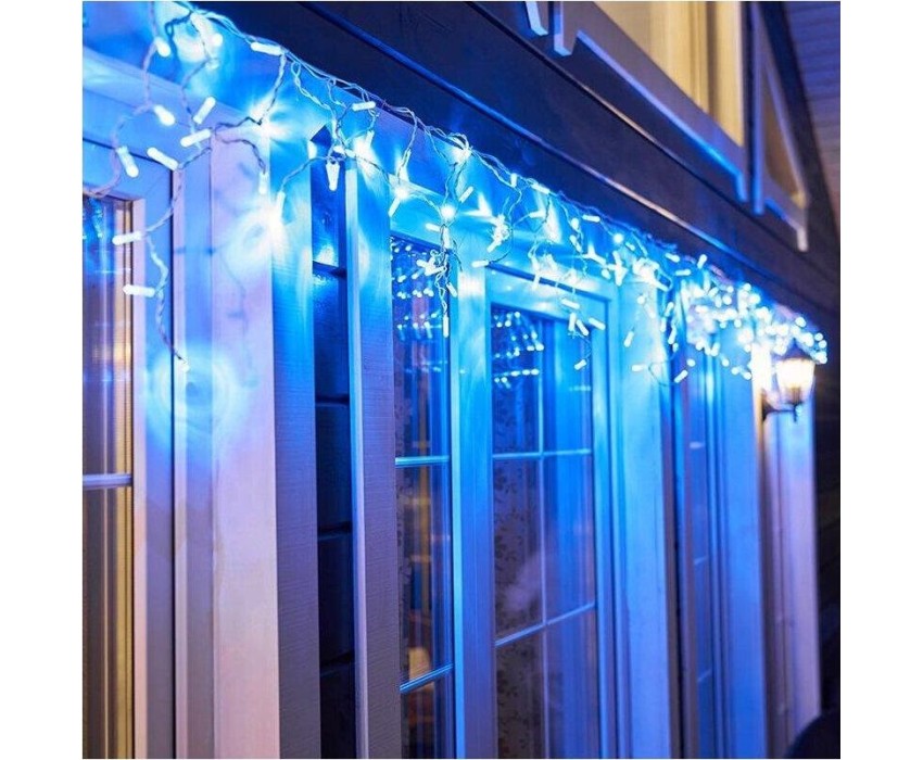 Данная гирлянда имеет Синий цвет свечения и предназначена для использования как внутри помещения, так и снаружи.
