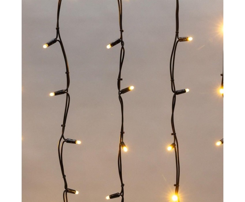 Данная гирлянда имеет теплый белый цвет свечения и предназначена для размещения как внутри помещений, так и снаружи.