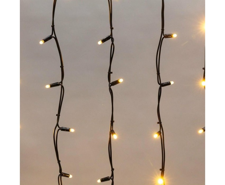 Данная гирлянда имеет теплый белый цвет свечения и предназначена для использования как внутри помещений, так и снаружи.