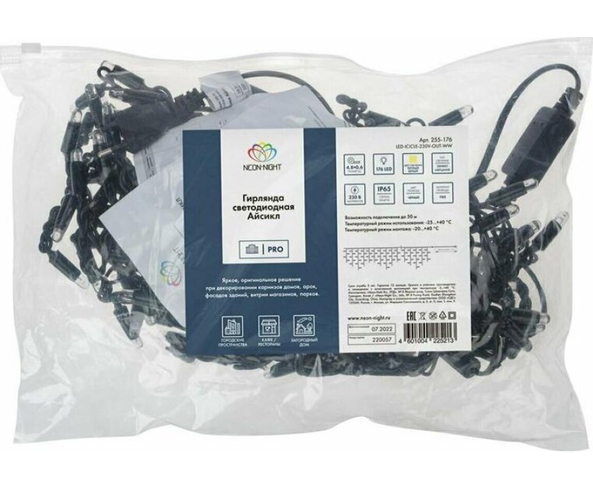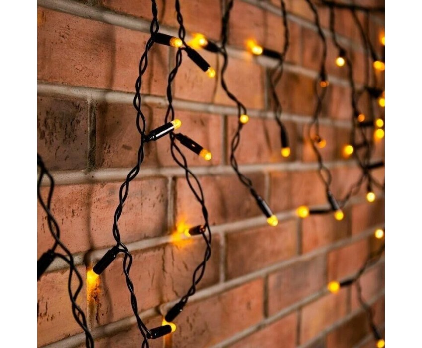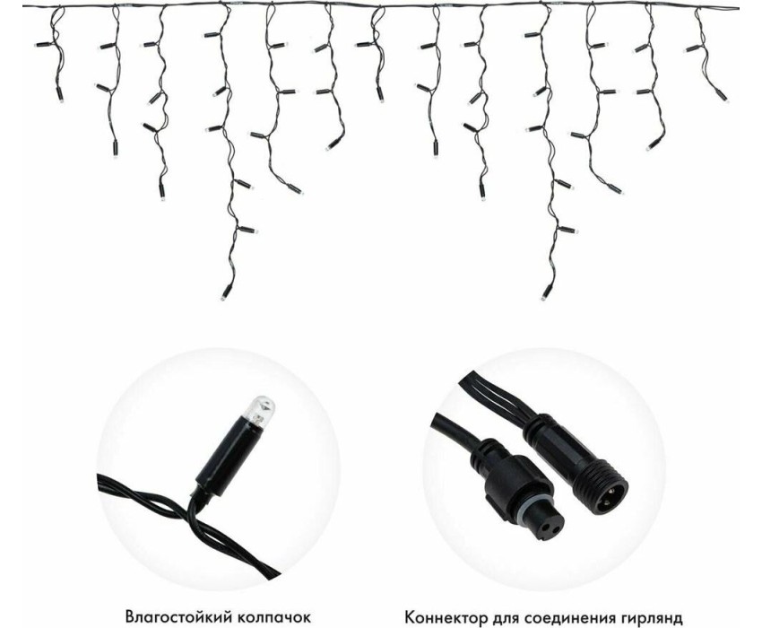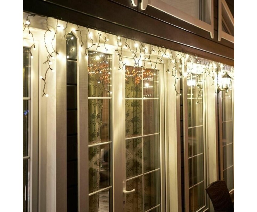Гирлянда имитирует сосульки и может послужить оригинальным решением при украшении карнизов, арок, фасадов зданий, витрин магазинов, а также стать эффектным элементом декора внутри помещений.