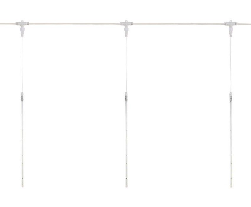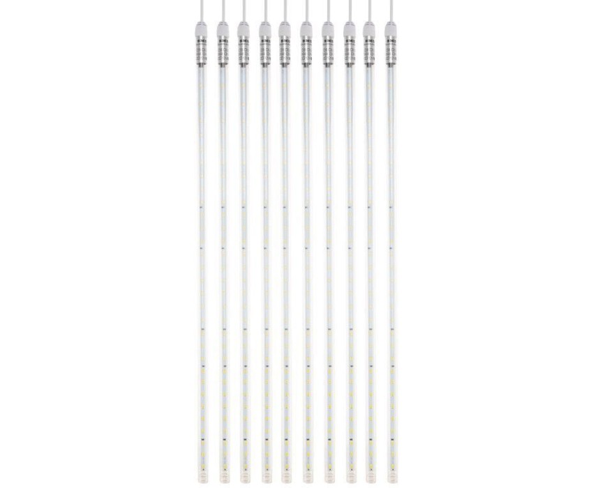 Светодиодная гирлянда Тающие сосульки – это оригинальное, красивое и современное средство для оформления интерьера, фасадов зданий, деревьев, витрин и т. д. Гирлянда представляет собой комплект из 10 прозрачных пластиковых трубок, расположенных на расстоянии 100 см друг от друга. Внутри каждой трубки установлена плата со светодиодами и микрочипом, который создает захватывающий эффект стекающей капли. Такой эффект оживляет пространство и создает магическую атмосферу. Длина каждой трубки составляет 50 см. Провод гирлянды выполнен из качественного морозостойкого каучука. Благодаря высокой степени защиты IP67 гирлянда может быть размещена не только в помещении, но и на улице.