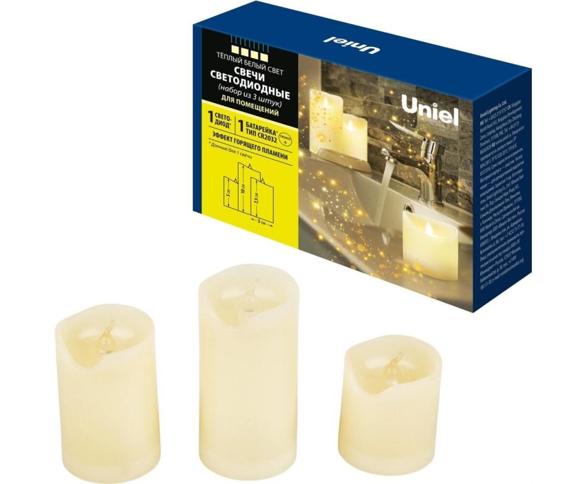 Новогодний декор UNIEL (UL-00008593) ULD-F060 WARM WHITE CANDLE SET3
