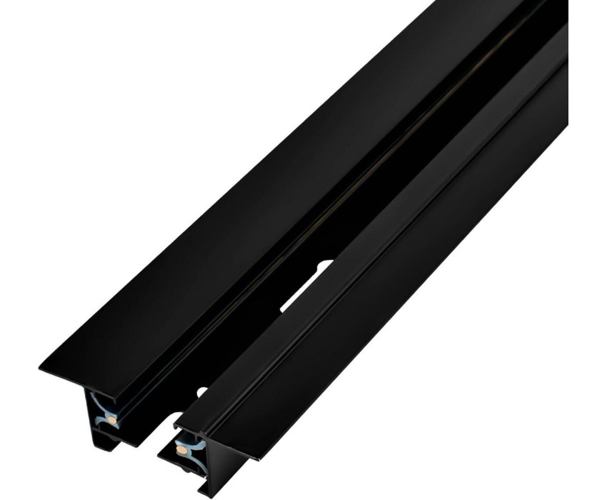 Встраиваемый шинопровод для однофазной трековой системы, ввод питания и заглушка в комплекте, металл/медь, чёрный, 1 метр