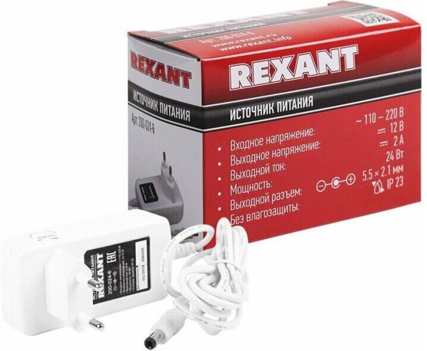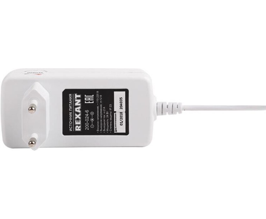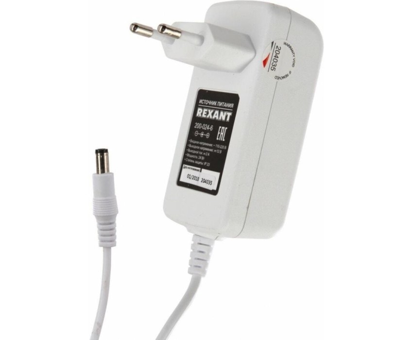 Блок питания REXANT (200-024-6) Источник питания 12 V 24 W с DC разъемом подключения 5.5х2.1, белый корпус (IP23)