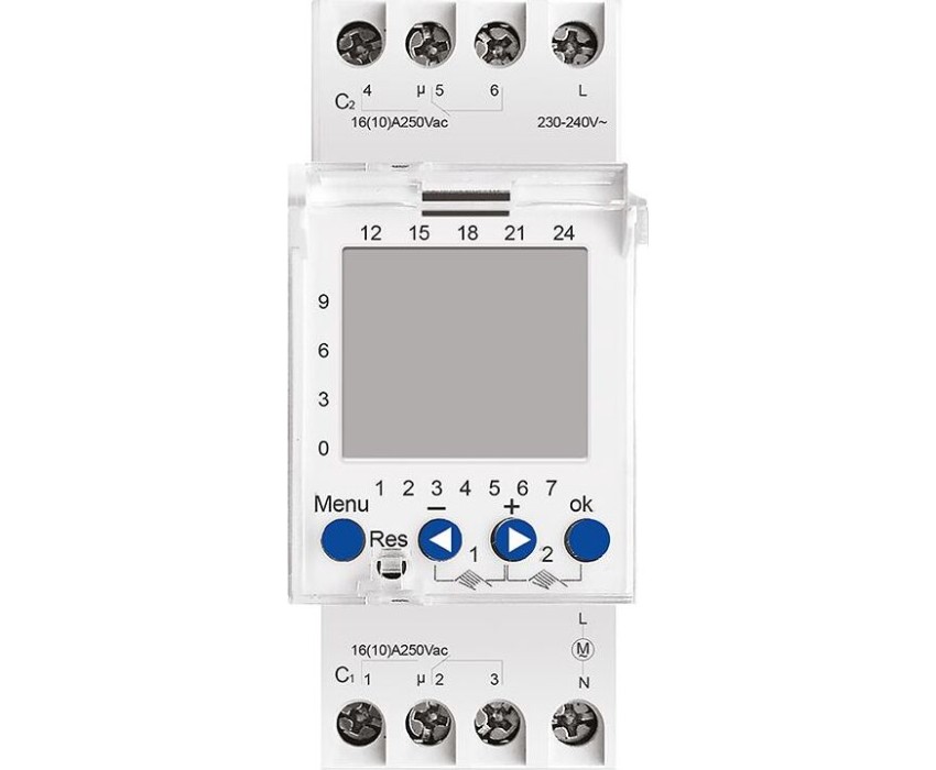 2х канальный, цифровой, на DIN-рейку, суточный/недельный, 2х16А/3680Вт