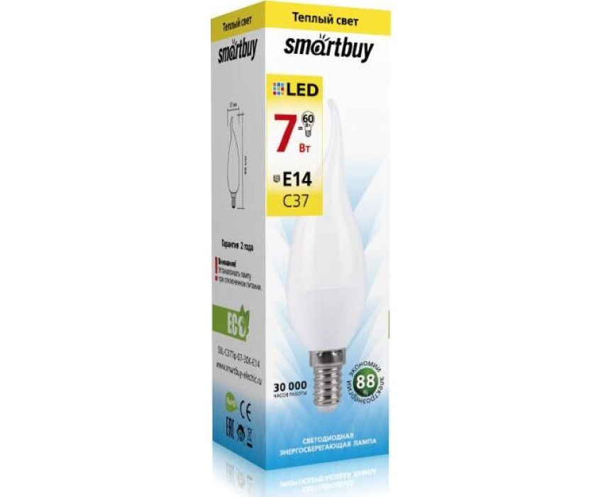 Светодиодная (LED) Лампа SMARTBUY (SBL-C37Tip-07-30K-E14) 7W/3000/E14