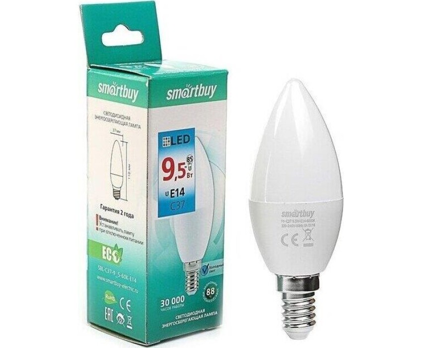 Лампа светодиодная SMARTBUY (SBL-C37-9_5-60K-E14) 9.5W/6000/E14