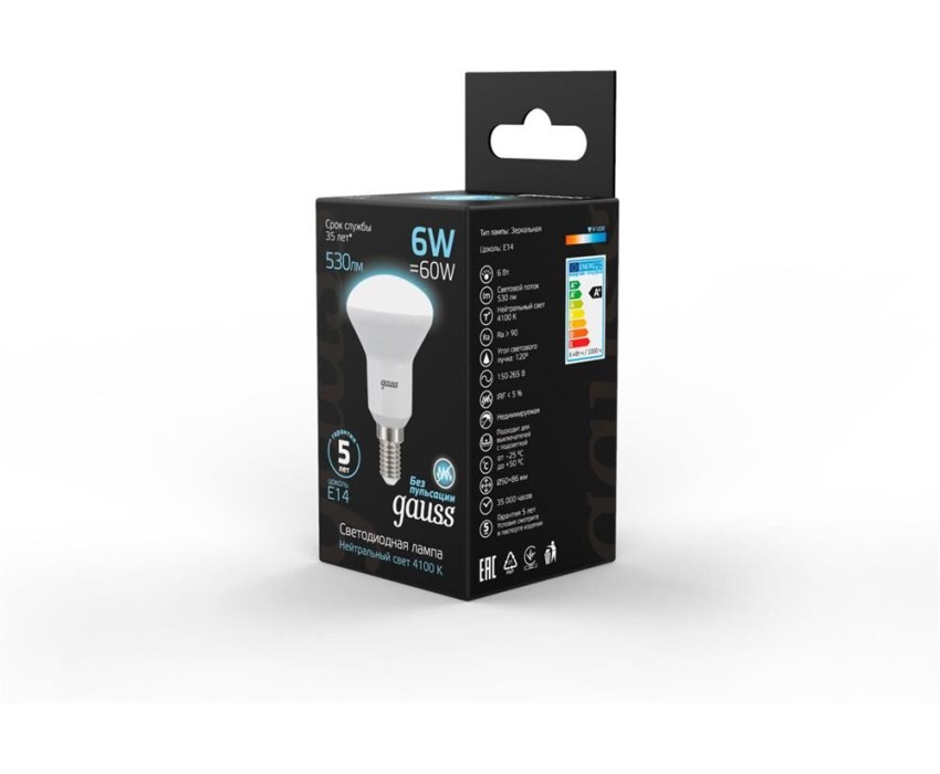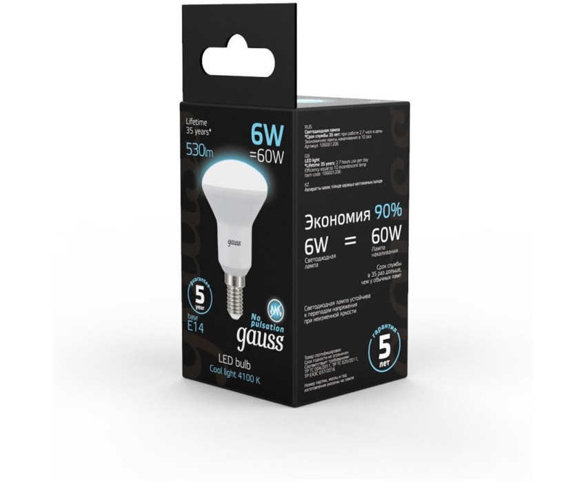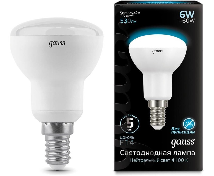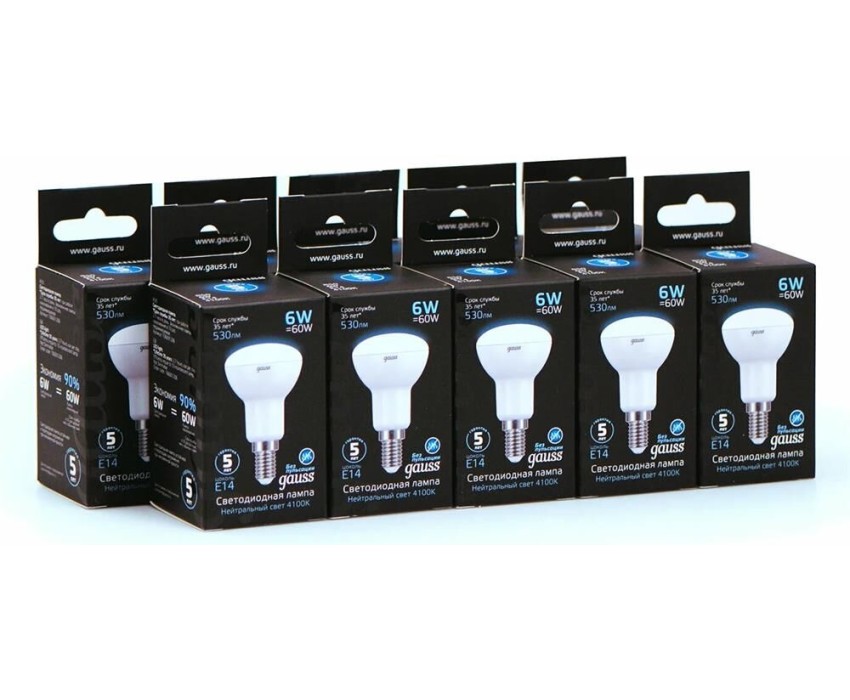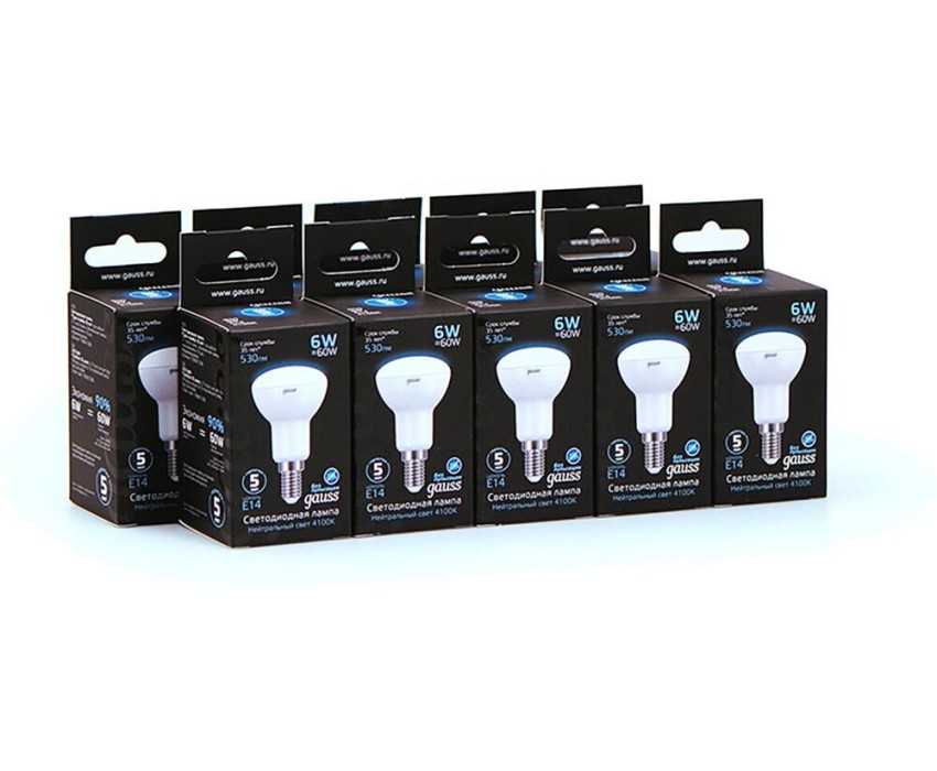GAUSS Упаковка ламп LED E14, рефлектор, 6Вт, R50, 10 шт. [106001106]