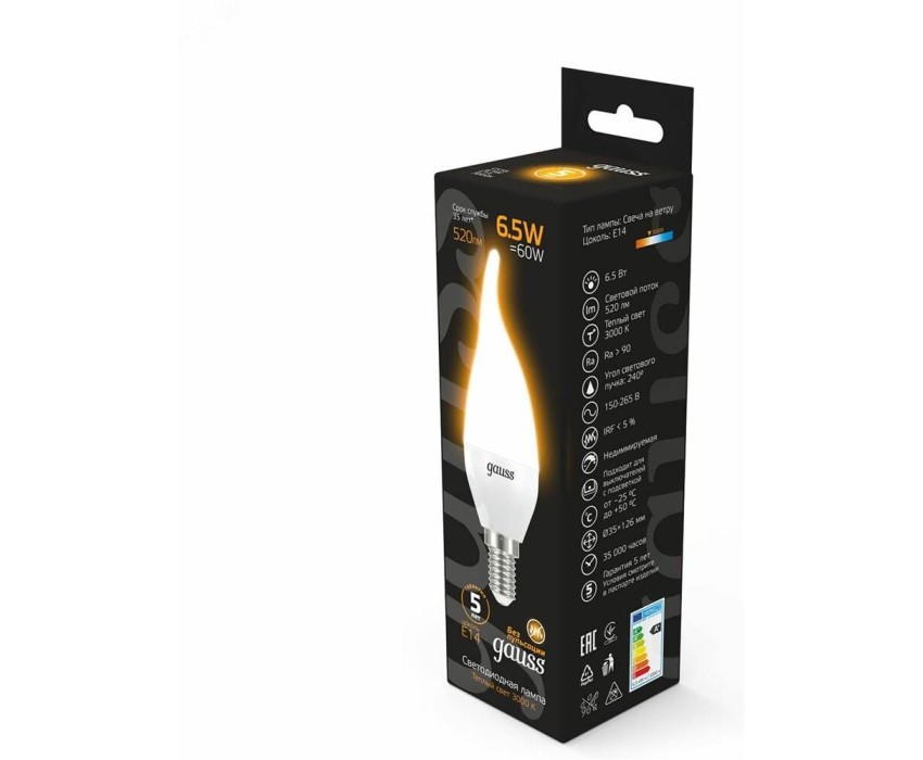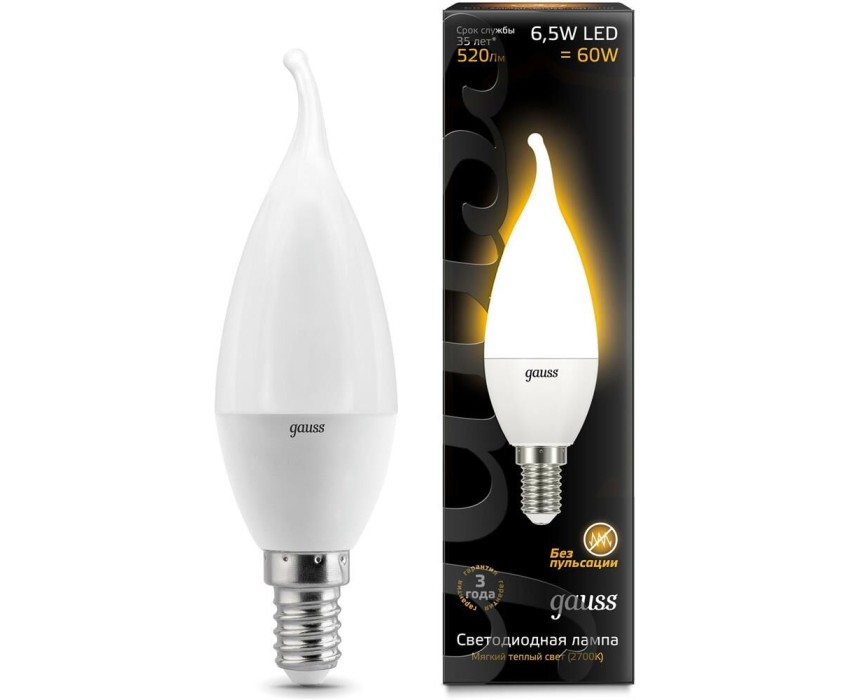 GAUSS Упаковка ламп LED E14, свеча, 6.5Вт, 10 шт. [104101107]