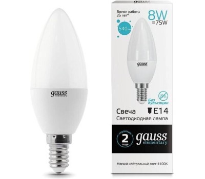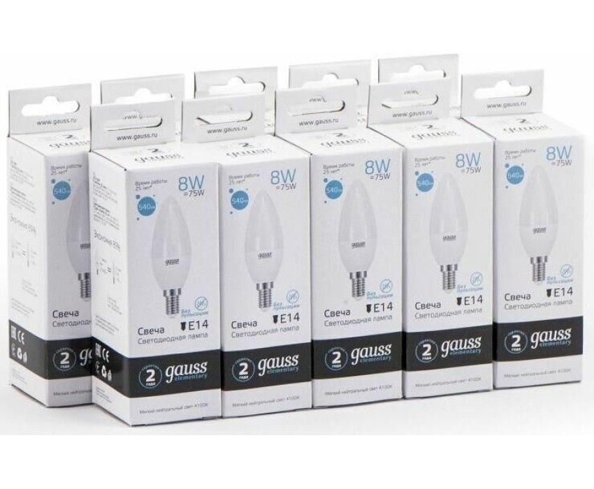 GAUSS Упаковка ламп LED E14, свеча, 8Вт, 10 шт. [33128]