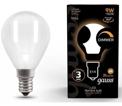 GAUSS Лампа светодиодная Filament 105201109-D 9Вт цок.:E14 шар 220B св.свеч.бел.теп. (упак.:10шт)